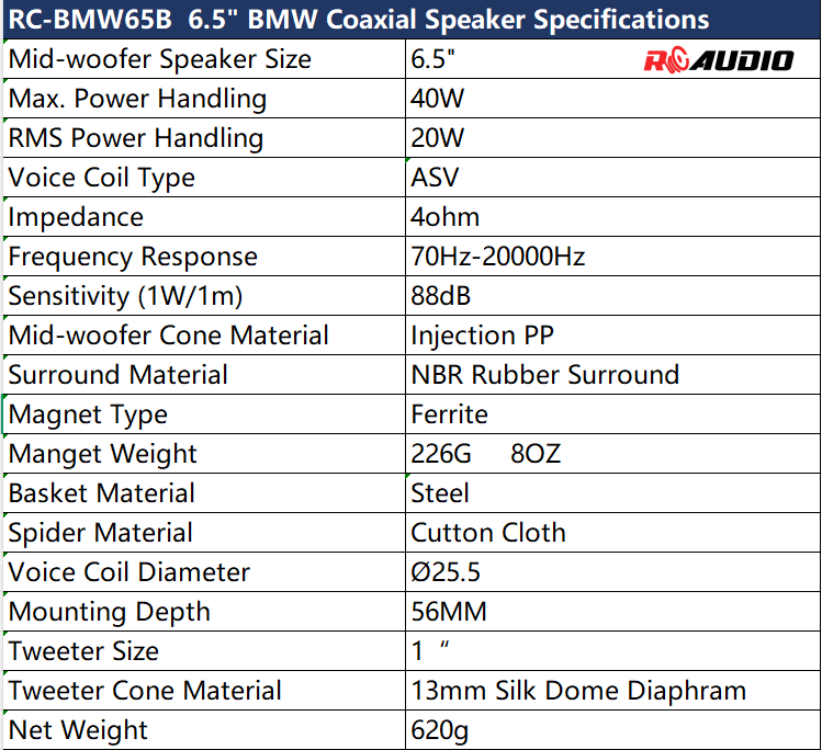 6.5" Entry Level Car Coaxial Speaker RC-BMW65B Price:¥ Id:RC-BMW65B Place of origin:CHINA