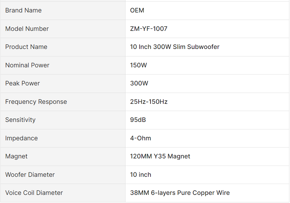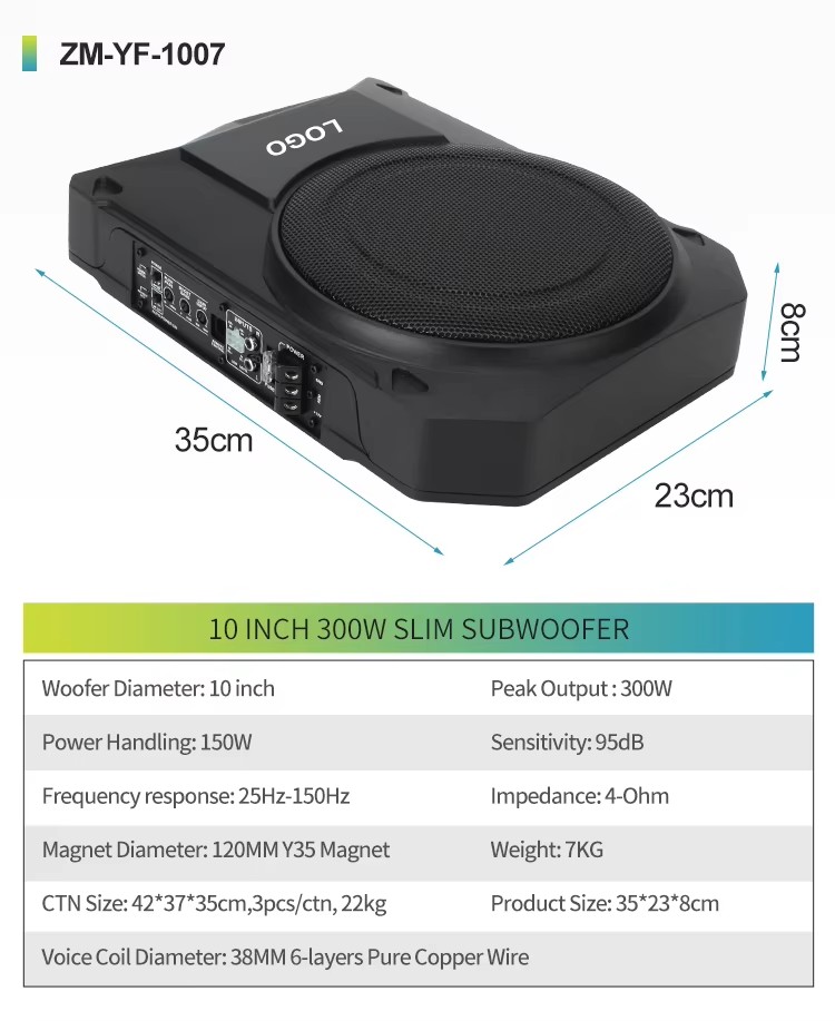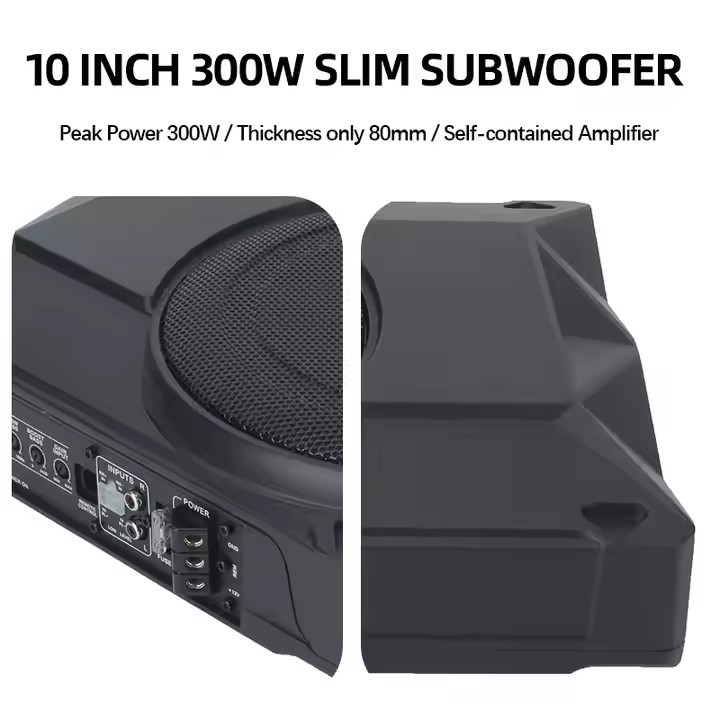 Powerful 600W 10 Inch Slim Automotive Subwoofer Aluminum Alloy 12V Bass Under Seat Subwoofer for Cars