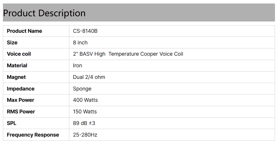 RMS150W 8 Inch Car Subwoofer Profession Car Kit Audio Speaker Woofer Price:¥ Id:RC-CS8140B